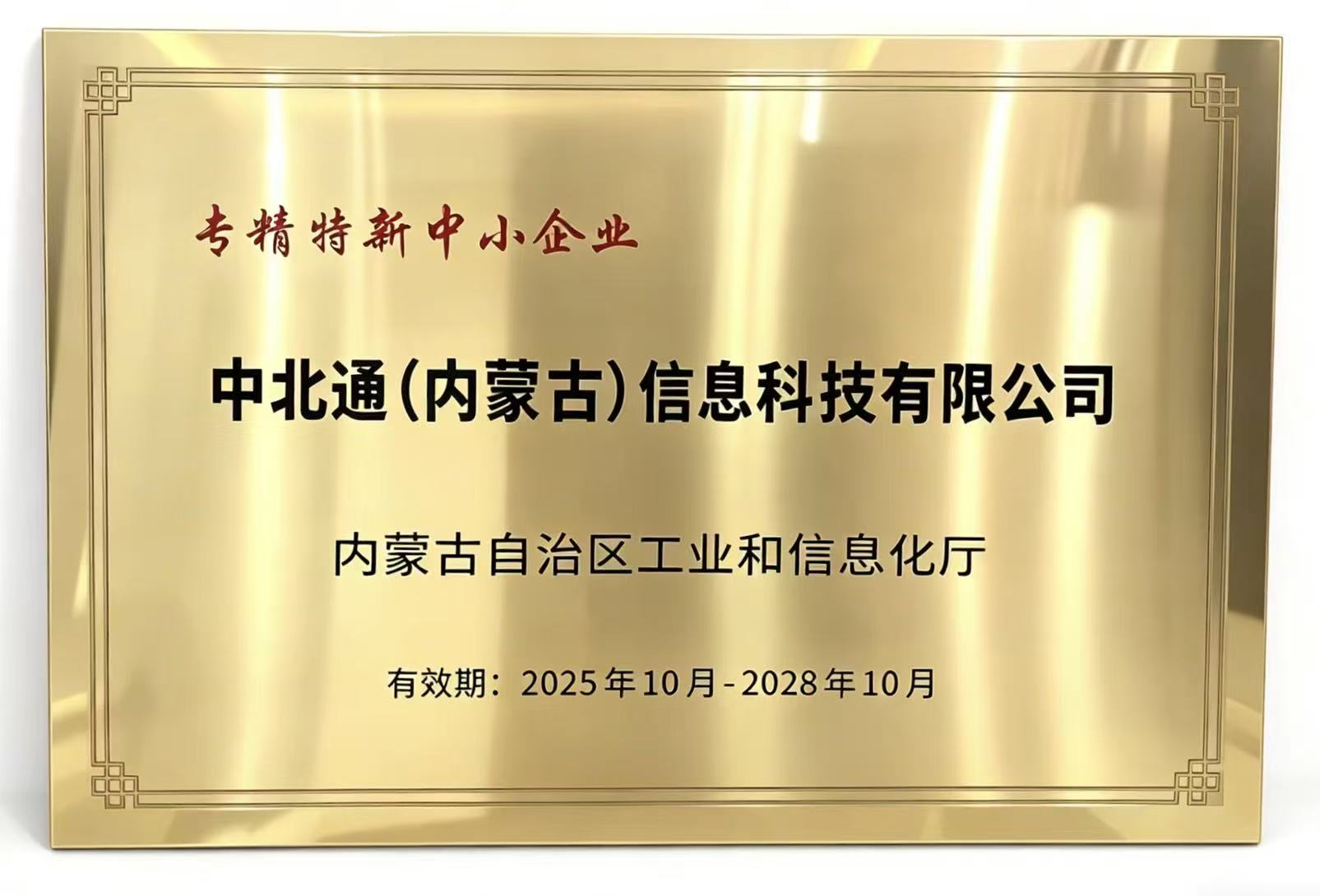 2025年12月,中北通(内蒙古)信息科技有限公司荣获内蒙古自治区专精特新中小企业称号。